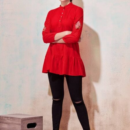 Designer Fancy Casual Heavy Soft Rayon Tunics Tops- Red