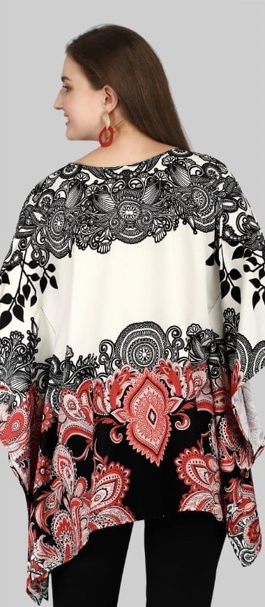 Trendy Poly-rayon Tunic Kaftans with Butterfly Sleeves – Off-white, Black