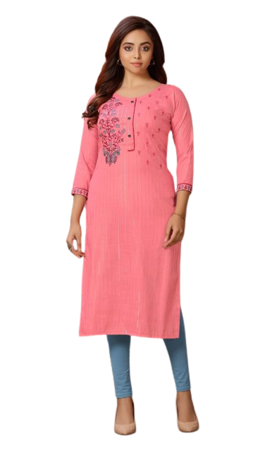 High Quality Pure rayon slub lurex Kurtis with embroidery works