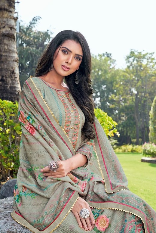 Top: Digital Printed Pure Heavy Muslin Kameez (Kurti) with Inner cotton mal fabric liner | Bottom : Pure Viscose Santoon fabric Salwar Pant | Dupatta : Digital Printed Pure Muslin Dupatta With Fancy Work borders