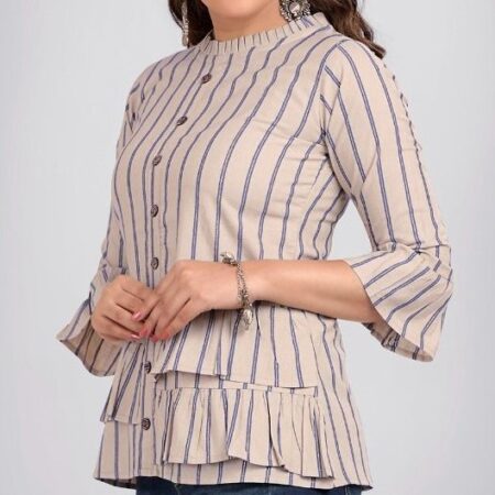 Cotton-Jacquard Slub Tunic Tops – Sand / Blue