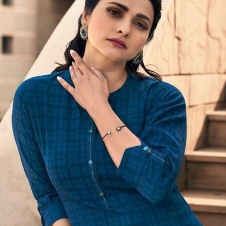 KURTI PALAZZO SET – BLUE WEAVE PATTERN / WHITE CHIKANKARI STYLE
